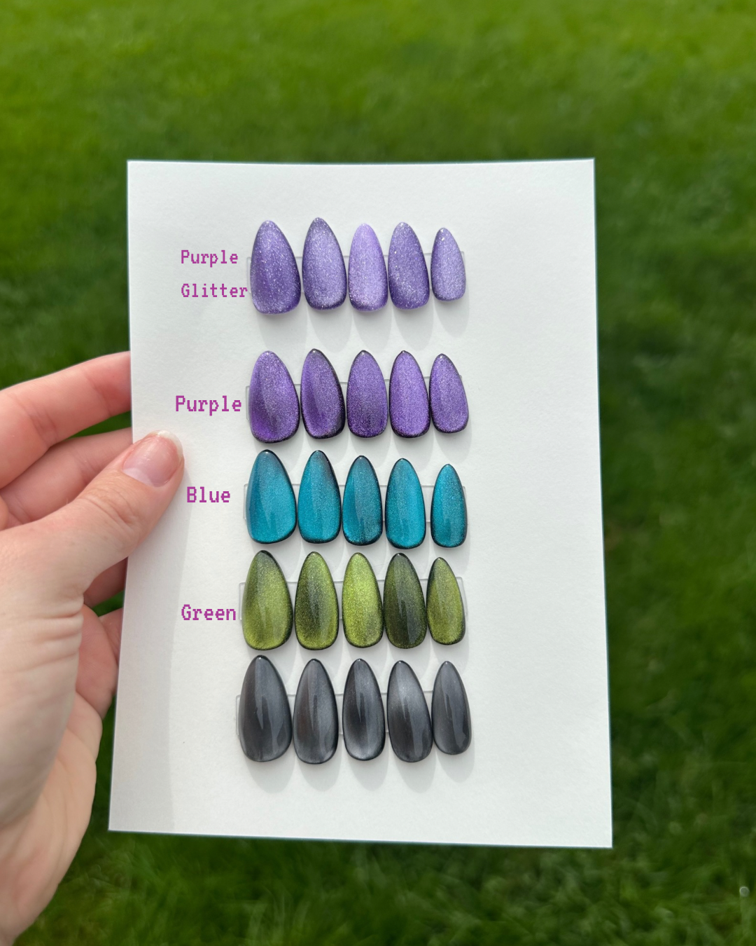 A solid cat eye set is bound to bring you a tiny sprinkle of magic! These nails feature a gel base, and are finished with a gorgeous magnetic cat eye polish. Your choice of color.