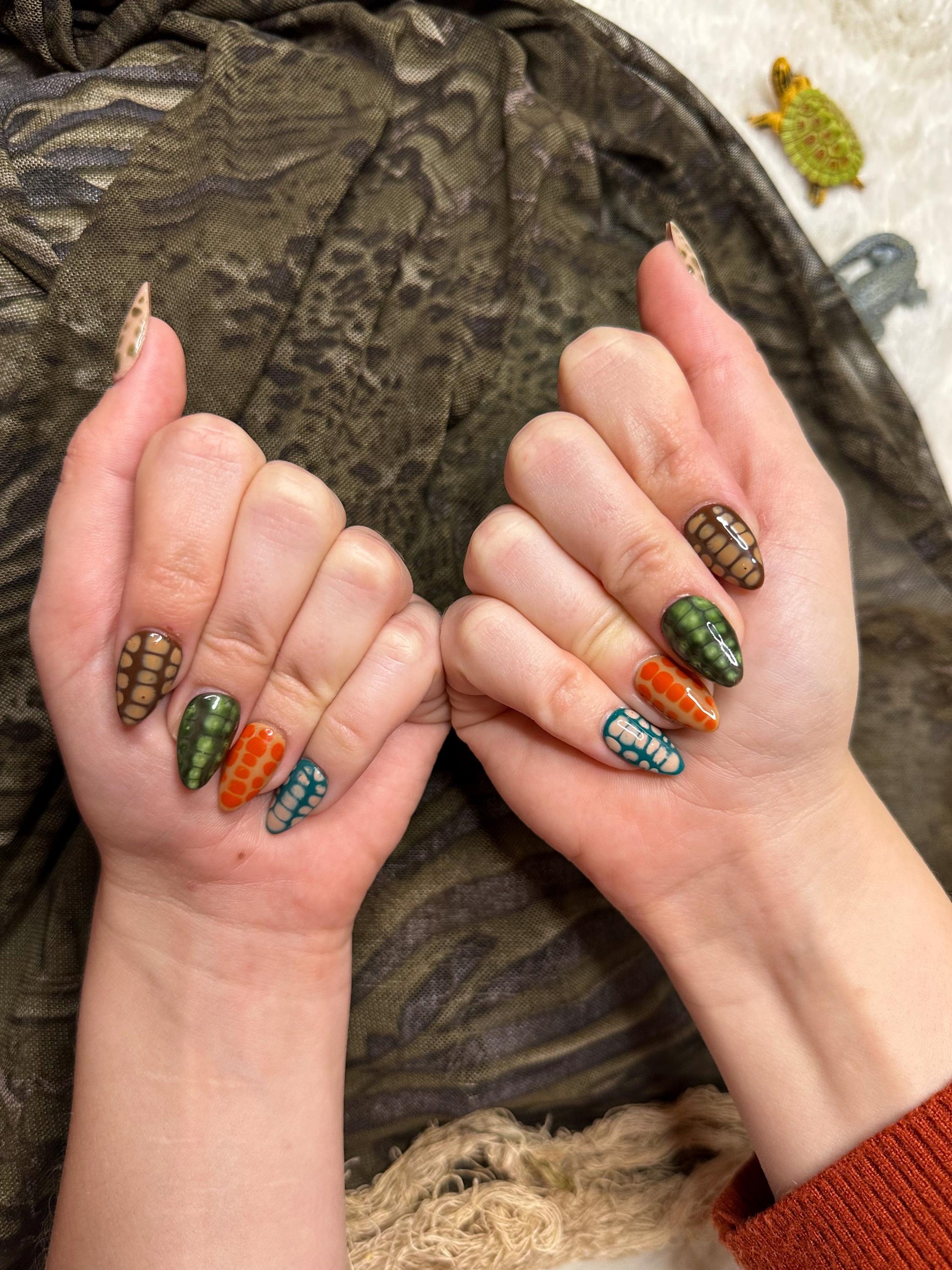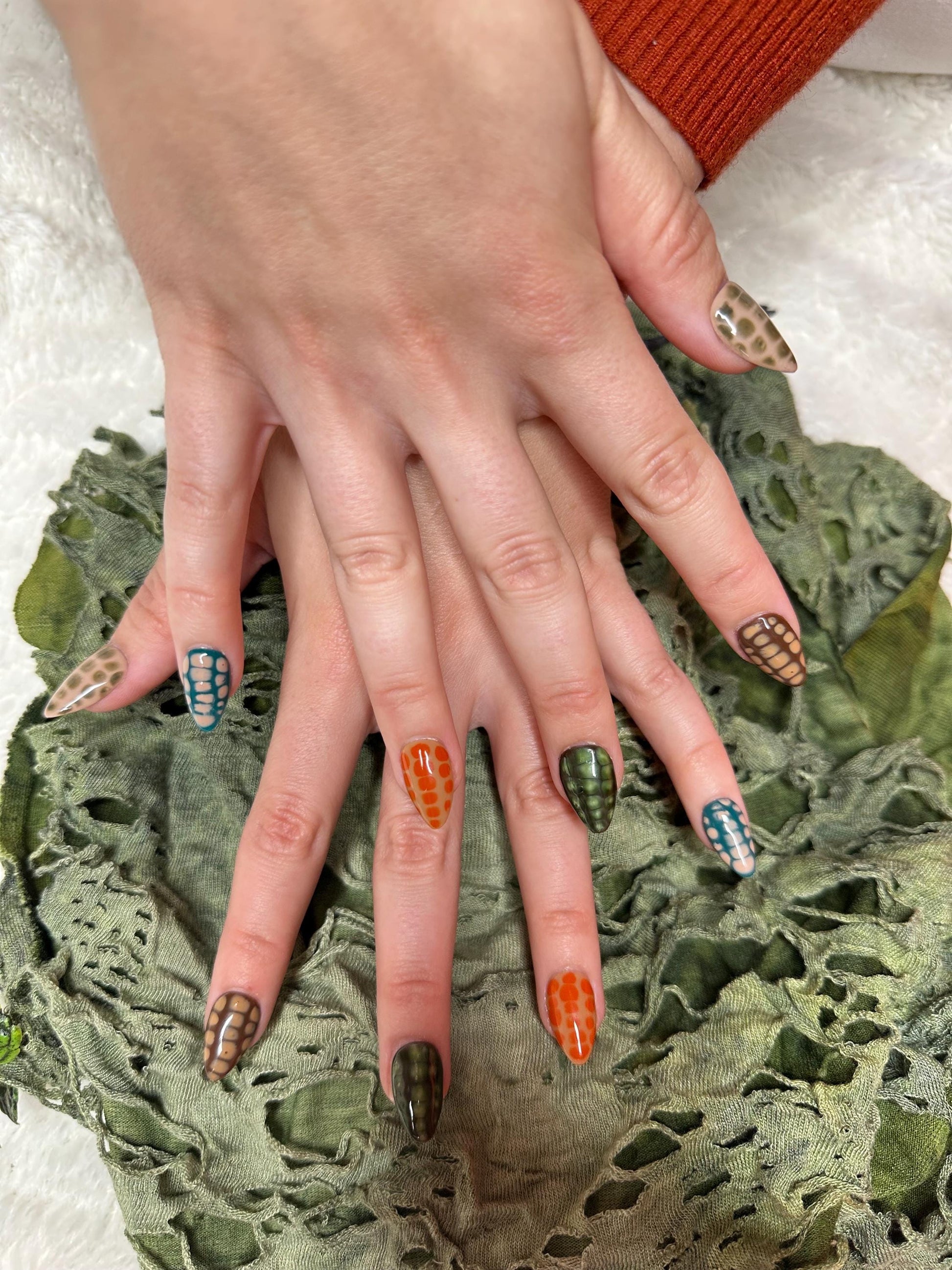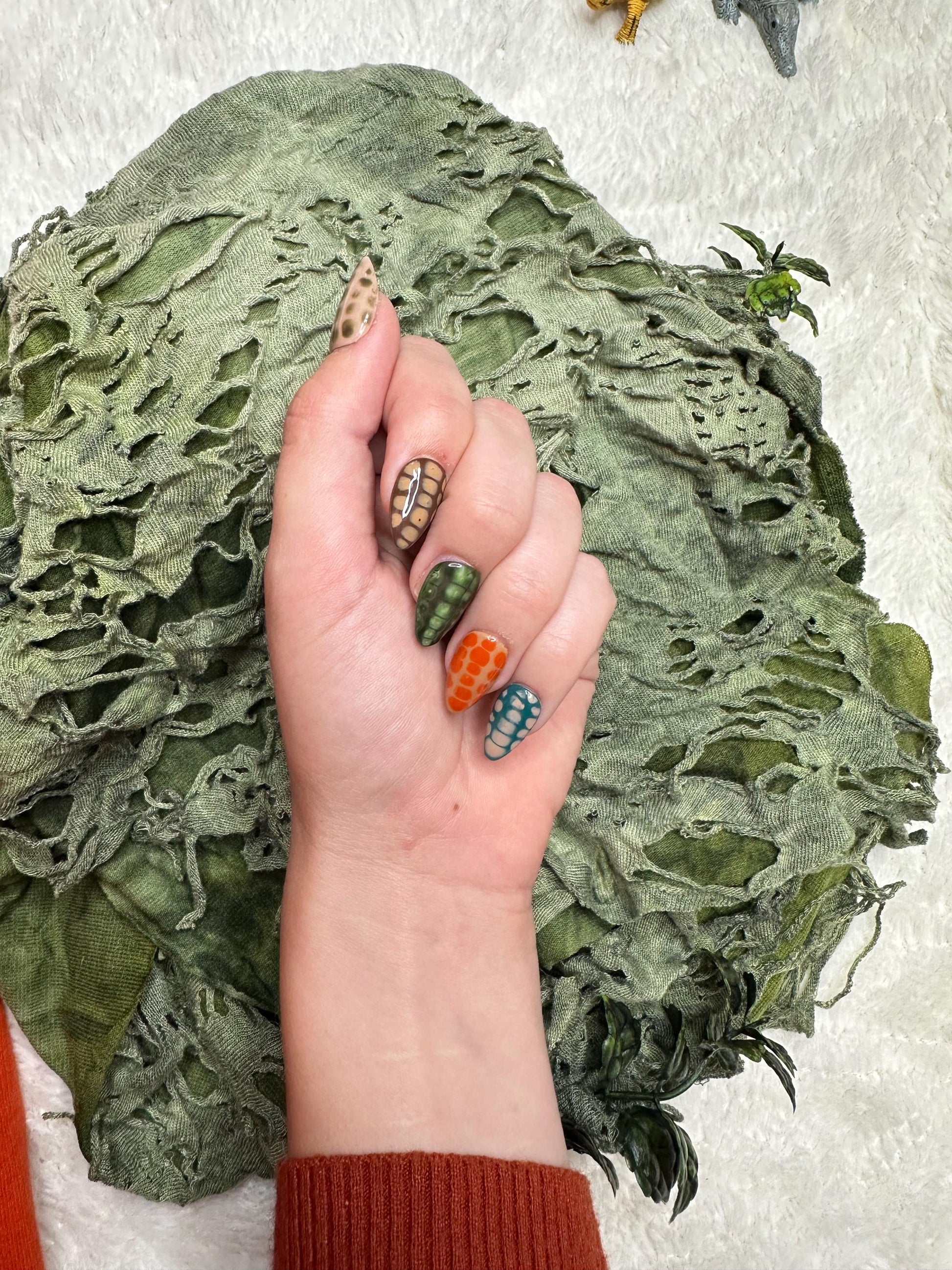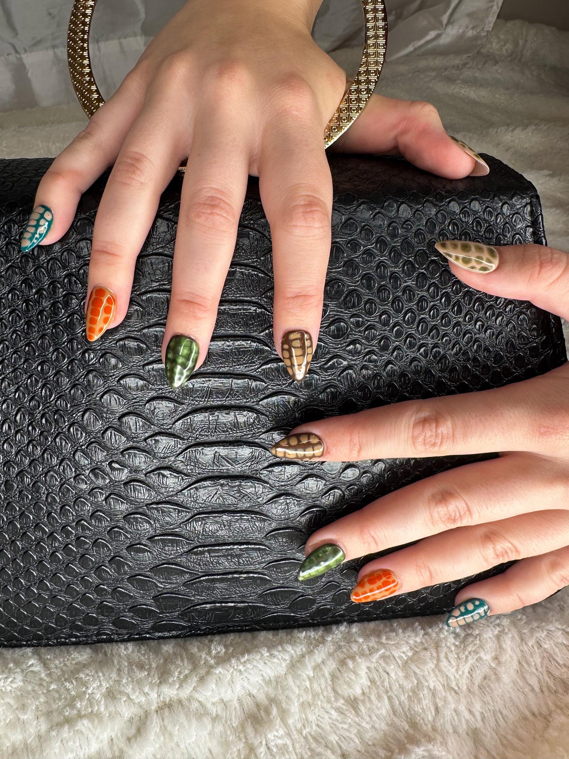 These crocodile print press ons include an earthy color pallet that will leave you feeling just a little feisty!