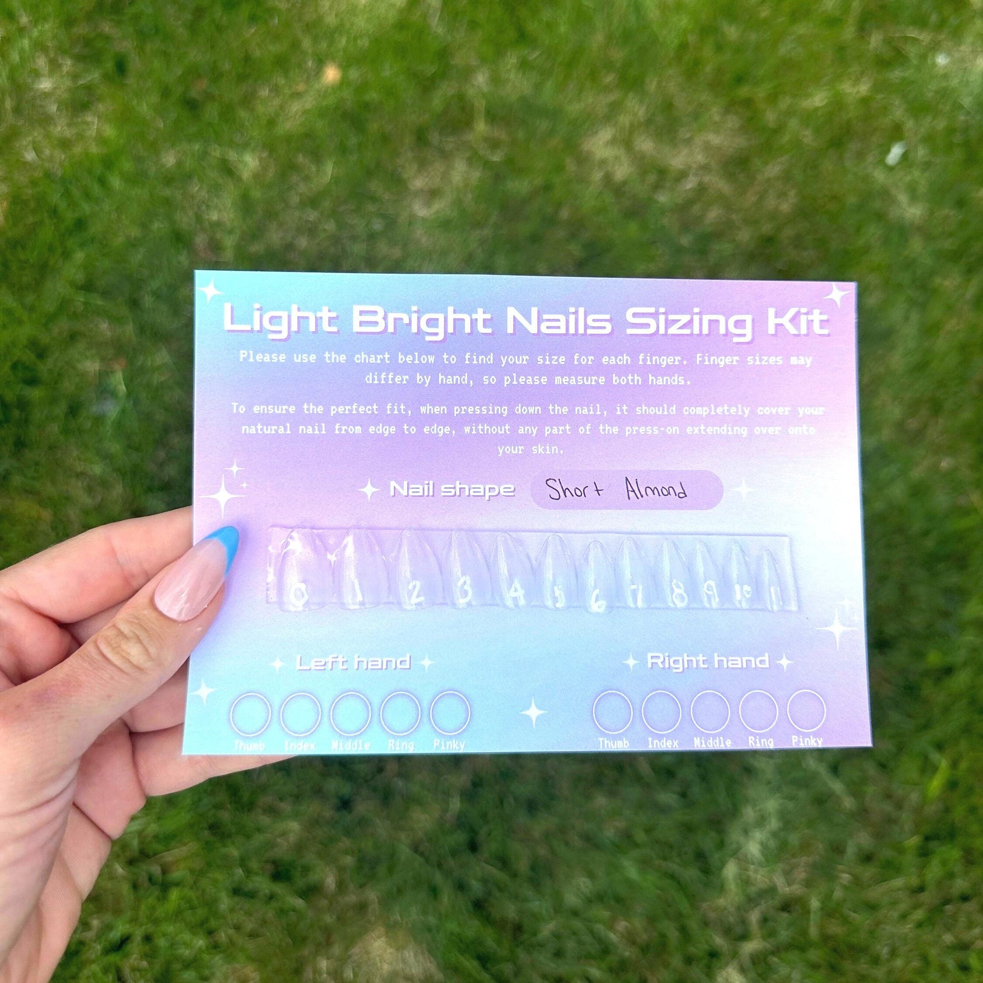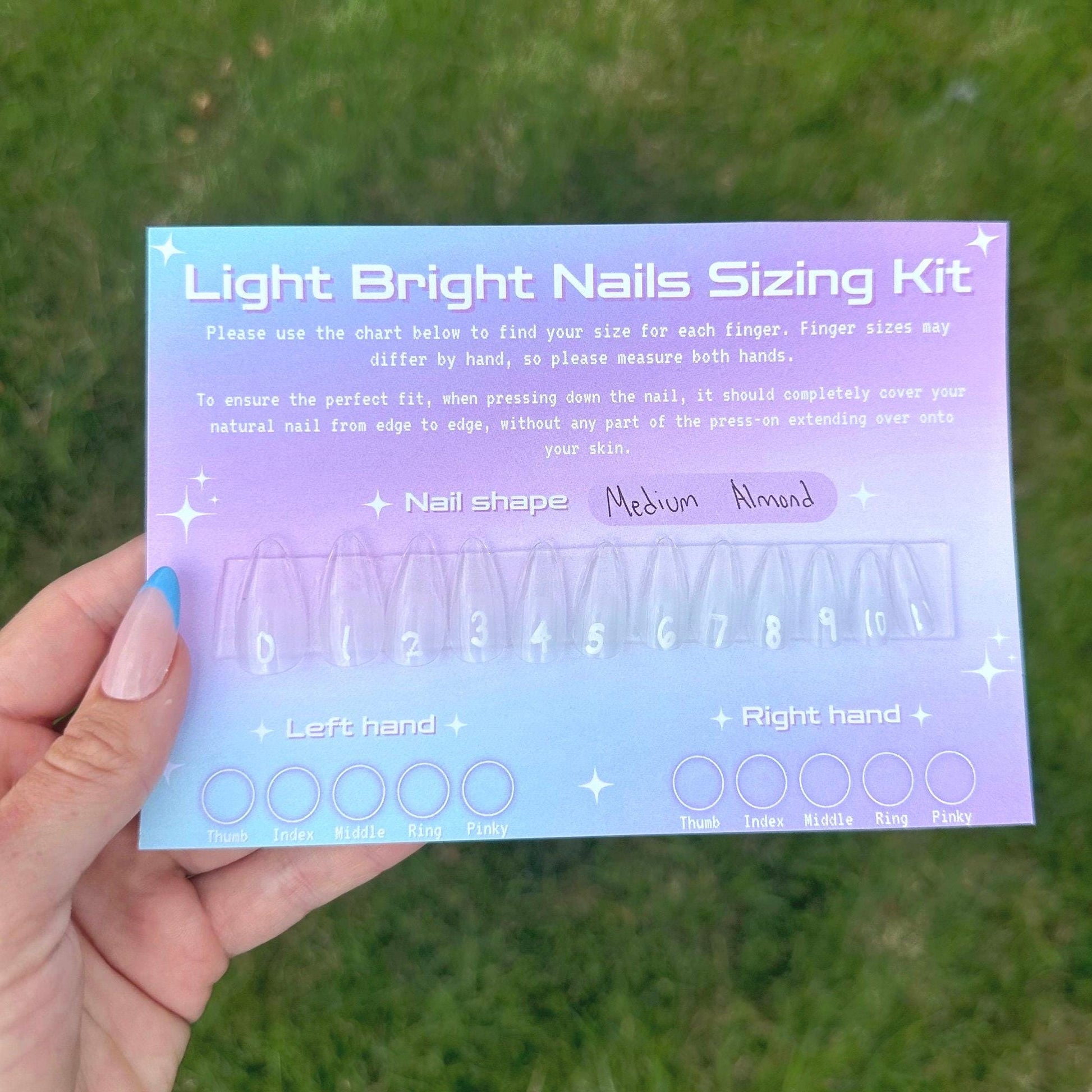 You only have to size your nails ONCE (per shape) and we will save your sizes for life! No need to worry about remembering your sizes or including them at check out.